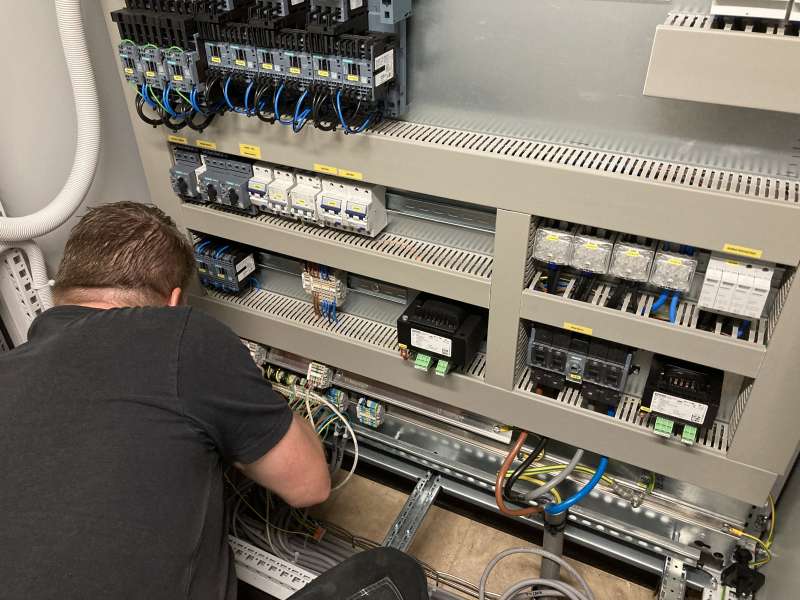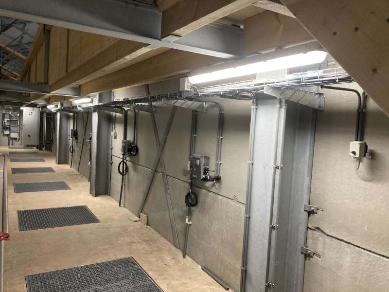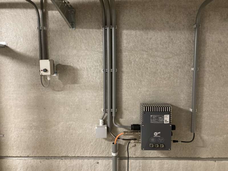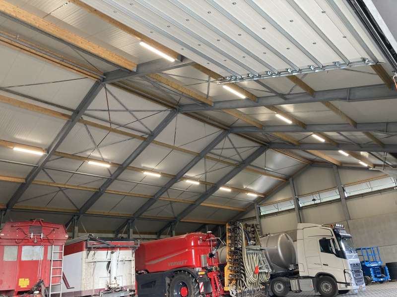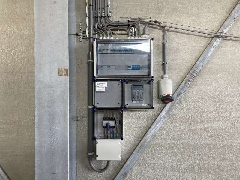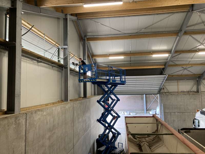 In Reusel hebben we de elektrische installatie in de nieuwe aardappel- en uienbewaarplaats gemaakt. Zo hebben we in de drukkamer voor Tolsma-Grisnich de frequentie regelaars aangesloten van de ventilatoren en in de bewaarplaats verlichting opgehangen en wandcontactdozen gemaakt.